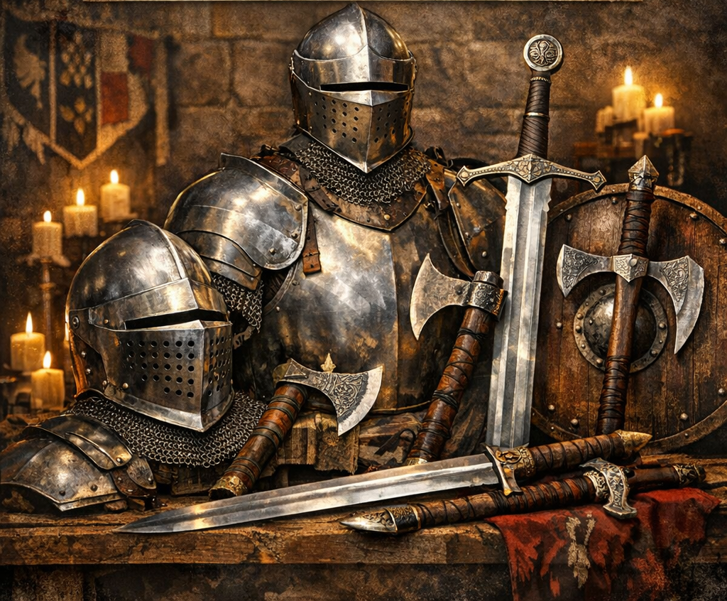 You can buy medieval armour, swords, axes, and a wide range of historically inspired medieval weapons and replicas.